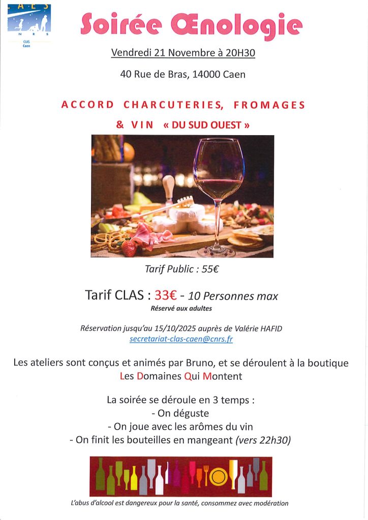 Le CLAS CAEN vous propose une dégustation de vins du Sud-Ouest. Vendredi 21 novembre.