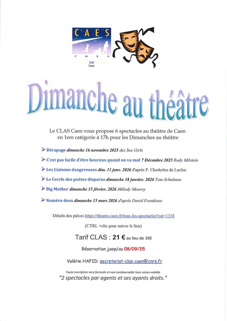 En cette rentrée, Le Clas de Caen vous propose une nouvelle saison des dimanche au théâtre.